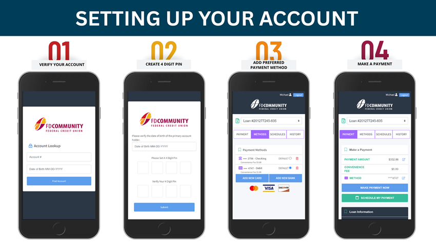 Pay via text message, our website, or through FD Community FCU online & mobile banking.